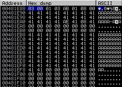 So if we have a look at chunk A (0x00481e88) we can see the chunk is in use because the flag is set to 0x1 (indicating that it is busy). The next chunk at (0x00481ea0) is not updated yet as it is still freed at this point to the lookaside.
