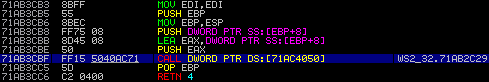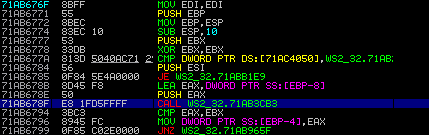 If we follow the function call at 0x71ab678f, we can see we land here: